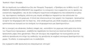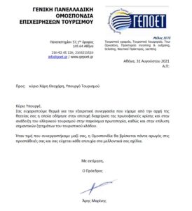Ευχαριστήριες επιστολές τουριστικού κλάδου για το έργο και την συνεργασία κατά την διάρκεια της θητείας του Υπουργού Τουρισμού κ. Χάρη Θεοχάρη (2019-2021)