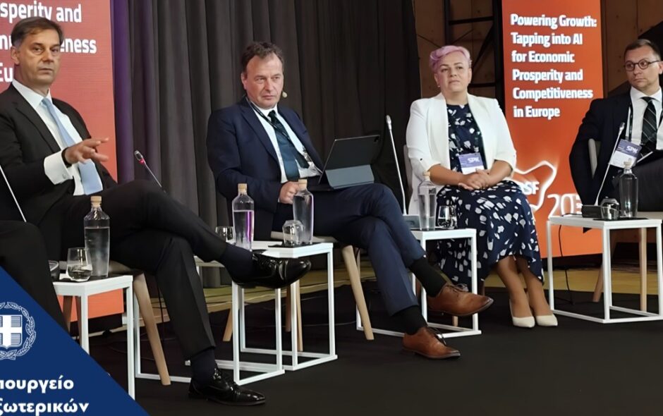 Σε συζήτηση στρογγυλής τράπεζης με θέμα την αξιοποίηση της Τεχνητής Νοημοσύνης για την οικονομική ευημερία και την ανταγωνιστικότητα στην Ευρώπη, ο Υφυπουργός Εξωτερικών επεσήμανε ότι η Ελλάδα αναπτύσσεται δυναμικά ως περιφερειακός κόμβος Τεχνητής Νοημοσύνης και ανέδειξε τα συγκριτικά πλεονεκτήματα της χώρας μας: στρατηγική θέση, οικονομική σταθερότητα και ανάπτυξη, εξειδικευμένο ανθρώπινο δυναμικό, αναπτυσσόμενο οικοσύστημα έρευνας και καινοτομίας. Ο κ. Θεοχάρης υπογράμμισε το γεγονός ότι η Ελλάδα είναι μία από τις 13 χώρες της ΕΕ που επιλέχθηκαν από την Κομισιόν για τη δημιουργία των πρώτων εργοστασίων Τεχνητής Νοημοσύνης (AI Factories). Όπως σημείωσε, το ελληνικό εργοστάσιο Pharos θα λειτουργήσει στο Τεχνολογικό Πάρκο Λαυρίου και θα εστιάζει σε θέματα υγείας, γλώσσας, πολιτισμού και βιώσιμης ανάπτυξης.