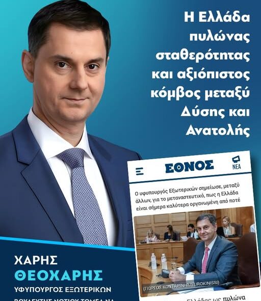 Θεοχάρης στο ethnos.gr: Η Ελλάδα πυλώνας σταθερότητας και αξιόπιστος κόμβος μεταξύ Δύσης και Ανατολής